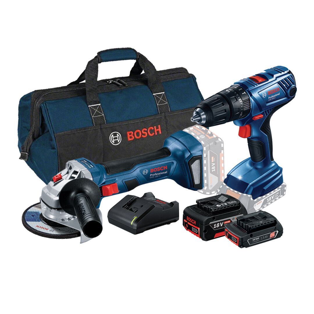 1 x GSB 180-LI IMPACT DRILL 18V 1 x GWS180-LI ANGLE GRINDER 18V 2 x BATTERIES(4.0Ah+1.5Ah) 1 x CHARGER