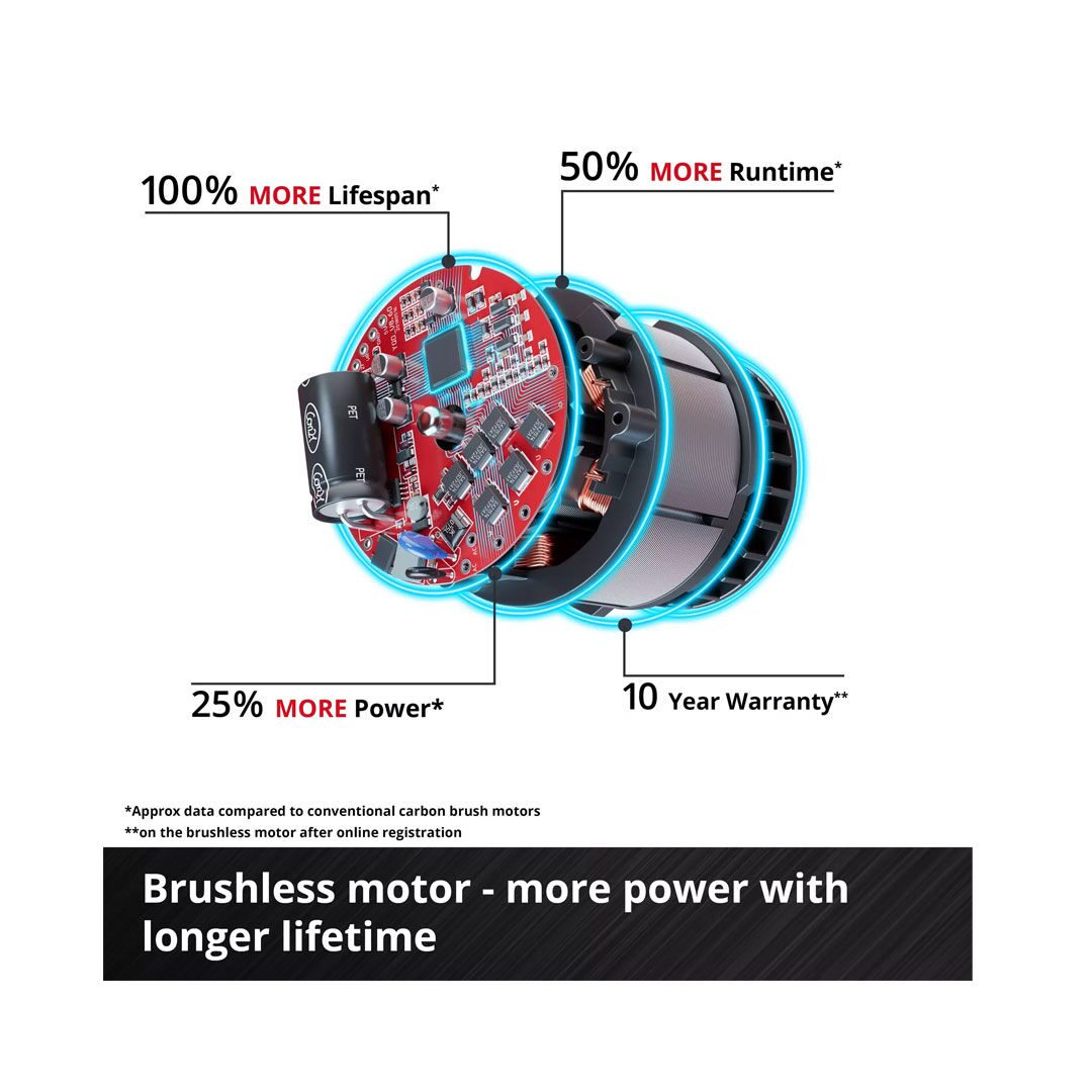 The Einhell Professional cordless angle grinder AXXIO 18/115 Q with a cutting depth of maximum 28 mm and 8,500 rpm is a powerful helper for cutting, grinding and roughing work. Thanks to the windscreen protector with quick adjustment, a tool-free windscreen exchange is possible.